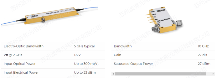 iXblue研制了NIR-MPX-LN-02及其配套的高压射频放大器DR-AN-10-HO,NIR-MPX-LN-02满足SBC激光系统的所有要求,这种相位调制器具有超过5GHz的带宽,1.5V的极低半波电压,超过33dBm的射频承受功率和300mw的光承受功率。
