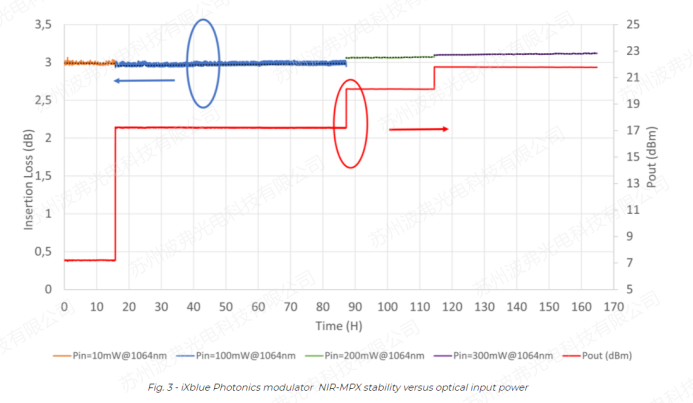 iXblue相位调制器NIR-MPX为1064 nm近红外波段开发,得益于对“质子退火交换”(APE)波导制造工艺的技术掌握(也用于我们自己的光纤螺仪中的Y波导),因此,APE波导可以承受几百毫瓦的光强。