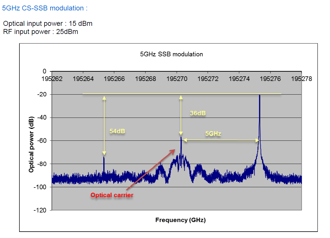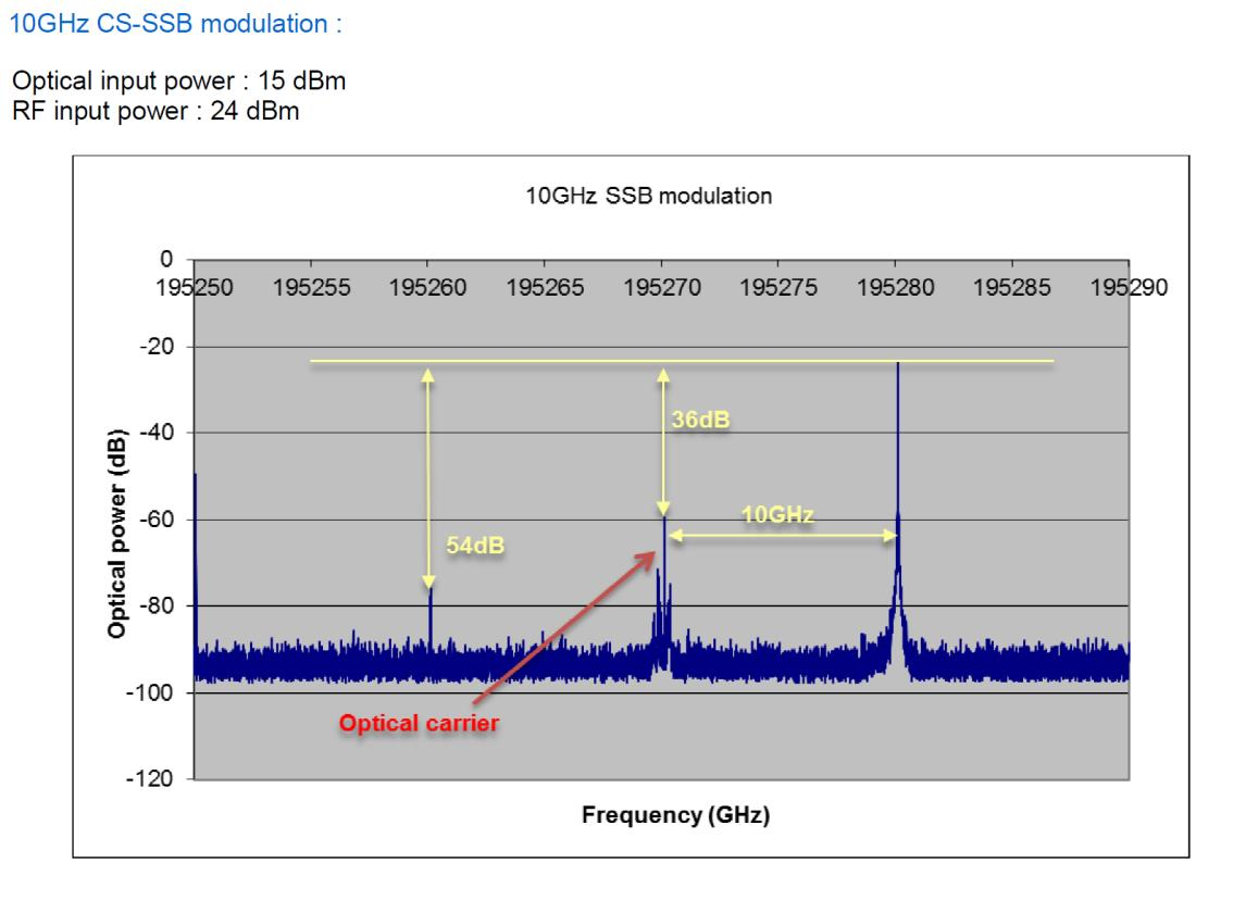苏州太阳成集团tyc539官网科技有限公司提供完整的载波抑制单边带调制(Carrier Suppression Single Side Band)方案。基于法国iXblue高消光比、高抑制比、高载波衰减的高性能铌酸锂IQ调制器(MXIQER-LN-30),提供高达32dB载波衰减、边带衰减,是目前市面上针对于单边带调制应用性能最好的调制器之一。