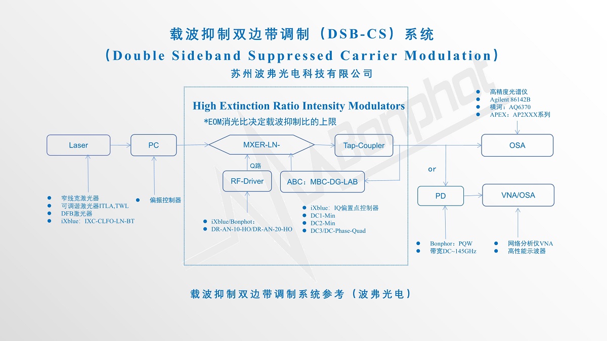 *双边带调制应用中,EOM的消光比决定了载波抑制比的上限,高消光比调制器能够更轻松的获得更高的抑制比、更高的对比度,苏州太阳成集团tyc539官网科技有限公司提供的法国iXblue高消光比调制器MXER-LN系列,消光比30~+40dB,是市面上所能提供的单个强度调制器最高的消光比(不借助偏振器、偏置电压调谐等外部处理情况下),多种选择,满足不同指标要求。