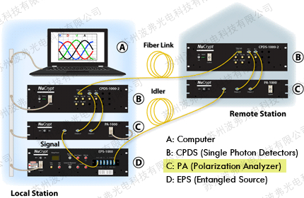 PA-1000 是一种计算机控制的光纤耦合偏振分析仪,由一个校准的偏振控制器和一个线性偏振器或一个偏振分束器组成。 四个或更多可变波片的光轴相互成 45° 角,执行偏振控制。 它通常用于在测量光的偏振纠缠态时选择所需的基态。 PA-1000 可以操作通过 USB 端口控制的独立设备,也可以与其他设备(如 NuCrypt CPDS-1000 检测系统和 NuCrypt Quantum 系统控制软件)集成,以实现自动量子测量,例如两 光子干涉 (TPI) 条纹和量子态断层扫描 (QST)。