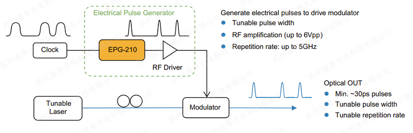 EPG-210 可用于增益开关激光器,以产生 30-60ps 的光脉冲。 驱动器电脉冲的 18ps 快速上升时间有助于抑制时序抖动。