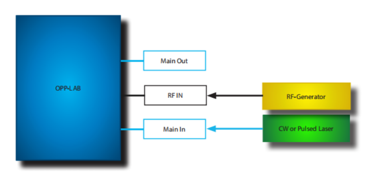 OPP-LAB连接到外部激光源(激光器)和外部电信号发生器。