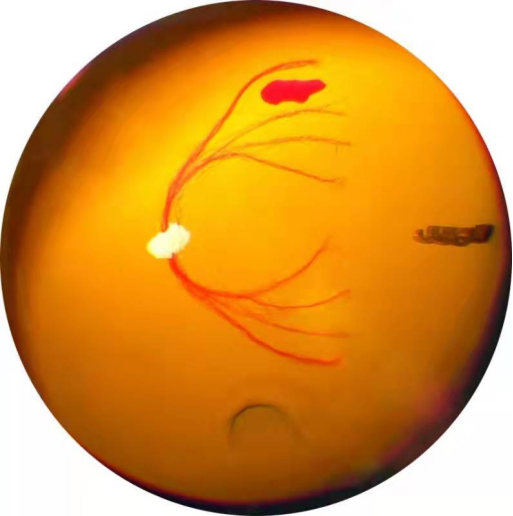 眼睛有视网膜脱离,显示视网膜升高和视网膜撕裂。